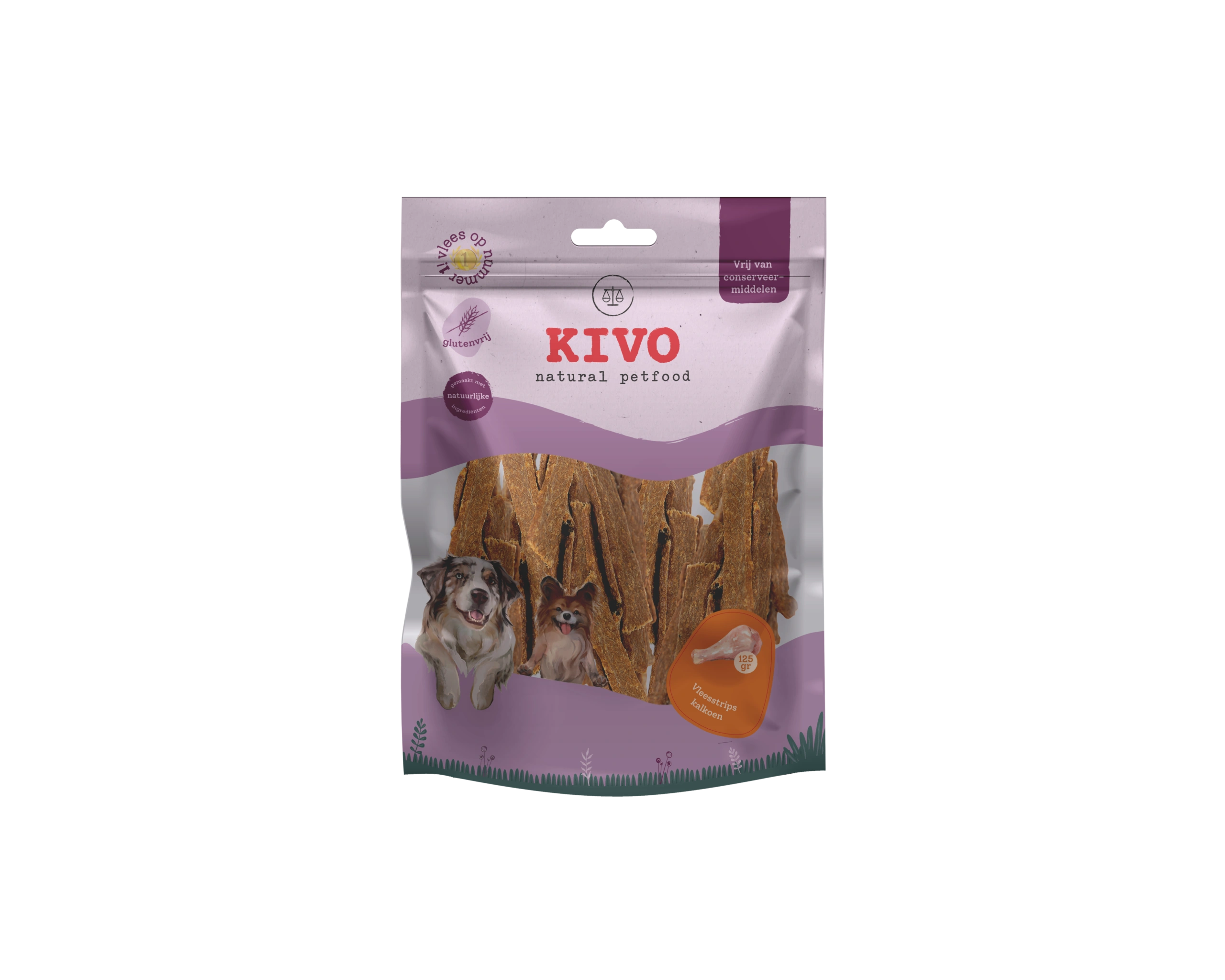 Kivo prirodne poslastice sušene trakice Puretina su 100% prirodni, hrskavi zalogaji za pse napravljeni od 99% purećeg mesa i 1% lososovog ulja, bez ikakvih dodataka, žitarica ili glutena. Ovi ukusni snackovi idealni su kao zdrava nagrada ili kao poslastica u svakodnevnoj prehrani vašeg psa.